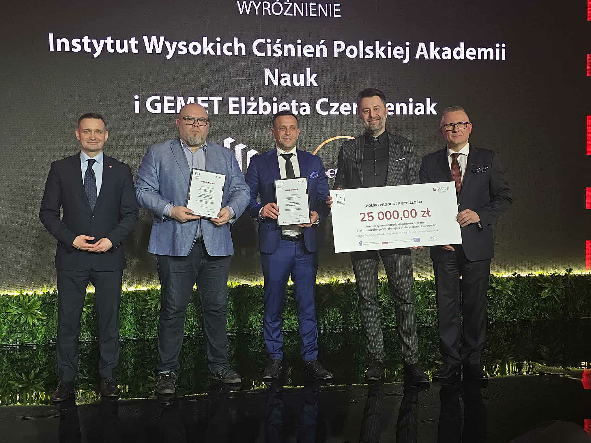 2 grudnia 2025 roku podczas Gali Finałowej XXVI edycji konkursu „Polski Produkt Przyszłości” organizowanego przez Polską Agencję Rozwoju Przedsiębiorczości (PARP) nasze laboratorium zostało uhonorowane wyróżnieniem za innowacyjny projekt elektrod do procesu drążenia elektroerozyjnego wgłębnego o podwyższonej żywotności. Projekt ten, realizowany w Laboratorium Plastyczności pod Wysokim Ciśnieniem z firmą GEMET Elżbieta Czerwieniak, wykorzystuje unikalne rozwiązania wysokociśnieniowej przeróbki plastycznej, co znacząco zwiększa wydajność konwencjonalnych procesów obróbki elektroerozyjnej.